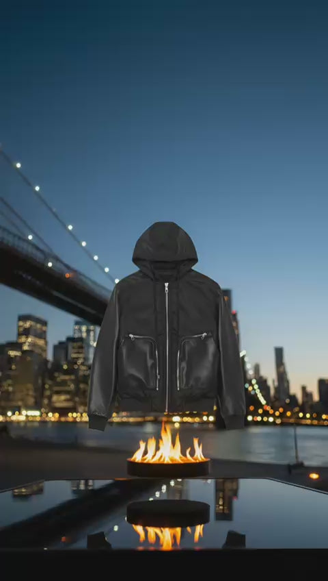 Fabricada ingeniosamente con cuero napa italiano resistente y de alta calidad. La chaqueta cuenta con herrajes cromados plateados y un forro interior personalizado de alta calidad.